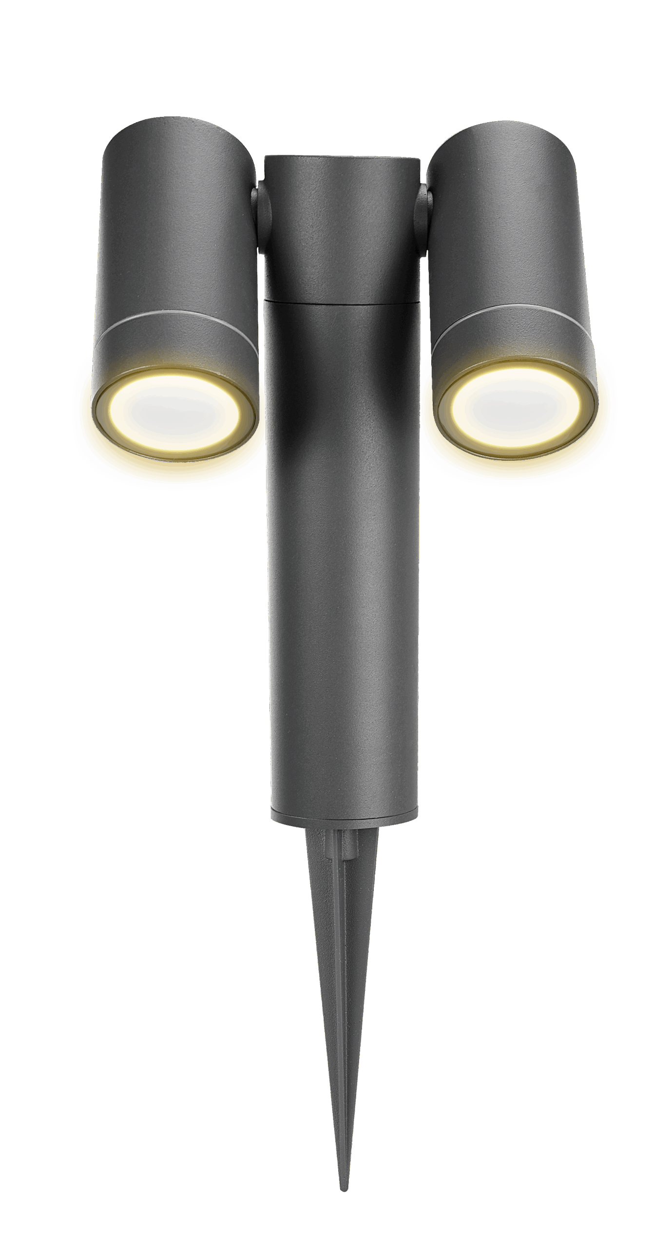 Hochwertiger Außenstrahler aus Aluminium in Anthrazit mit Erdspieß für flexible Platzierung im Garten. Ausgestattet mit 2× GU10-Fassungen und schwenkbarem Strahlerkopf für gezielte Lichtakzente. Wetterfest dank IP65 – ideal zur Beleuchtung von Pflanzen, Wegen und Fassaden.